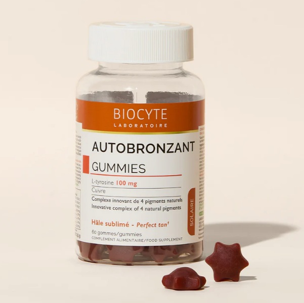 BOMBONI ZA SAMOPORJAVITEV proizvajalca Biocyte nudijo inovativno rešitev za sublimno porjavelo polt brez izpostavljanja soncu. Vsebujejo kompleks štirih naravnih pigmentov, baker, ki pripomore k normalni pigmentiranosti kože, in vitamin E, ki ščiti celice pred oksidativnim stresom. Vsak dnevni odmerek 2 bombonov vas oskrbi z vitaminom D, L-tirozinom, likopenom, luteinom, zeaksantinom in astaksantinom – z aktivnimi učinkovinami, ki so znane po svojih samoporjavitvenih koristih. Sinergija teh aktivnih učinkovin spodbuja naravno, enakomerno porjavelost, hkrati pa ščiti kožo pred oksidativnimi poškodbami. Bombone z okusom borovnice je preprosto integrirati v dnevno rutino. Formula brez beta-karotena je idealna za tiste, ki iščete varno in učinkovito alternativno tradicionalnim samoporjavitvenim izdelkom. Hranilna vrednost za priporočen dnevni vnos (2 bonbona):